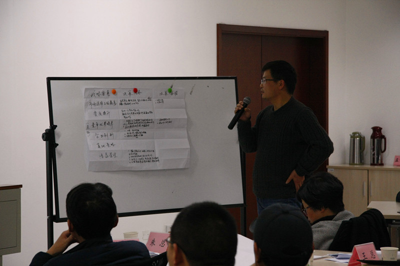 較之于金固講堂前三期的培訓(xùn),第四期課程的學(xué)習(xí)形式有了較大變化,培訓(xùn)結(jié)合了小組討論的形式,公司各部門的員工隨機(jī)組成小組,合作完成卜老師布置的課題并委派小組代表進(jìn)行闡述。在培訓(xùn)中,卜老師通過(guò)SWOT分析、波士頓矩陣等方法對(duì)公司發(fā)展進(jìn)行了全方位的分析,在場(chǎng)學(xué)員們也紛紛利用卜老師教授的方法填寫了圖表并做了展示。會(huì)場(chǎng)上交流熱烈,歡聲不斷。